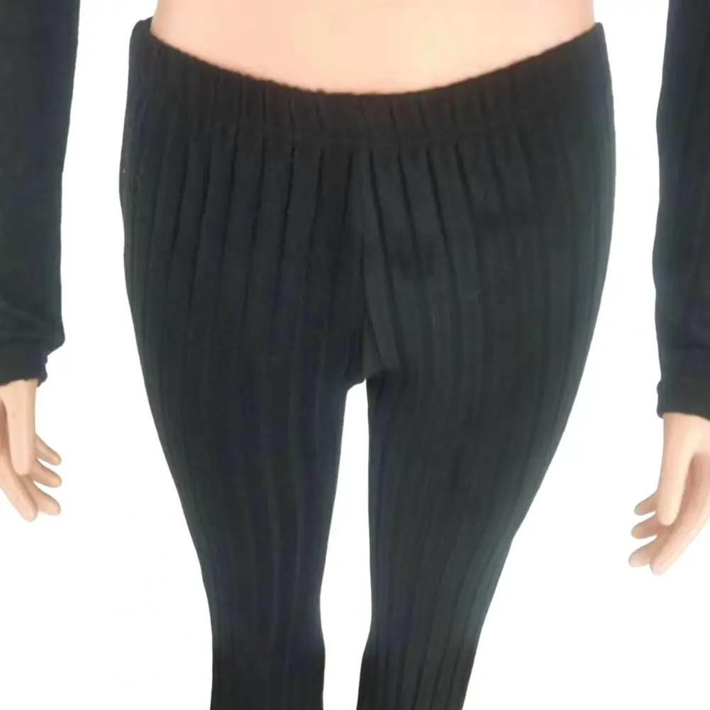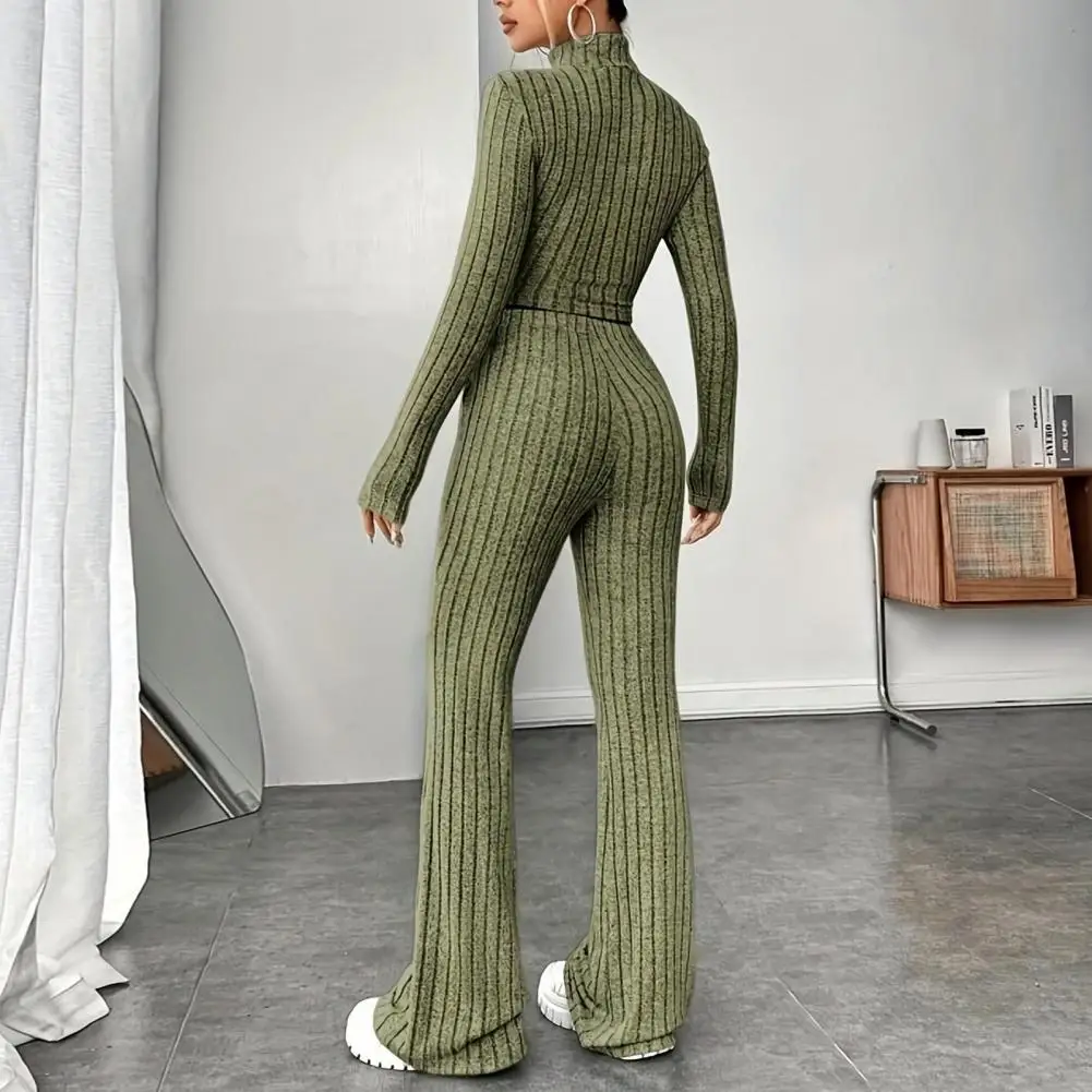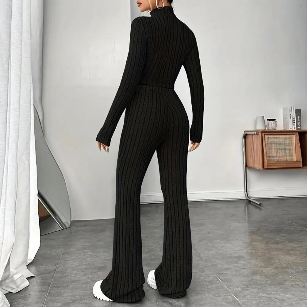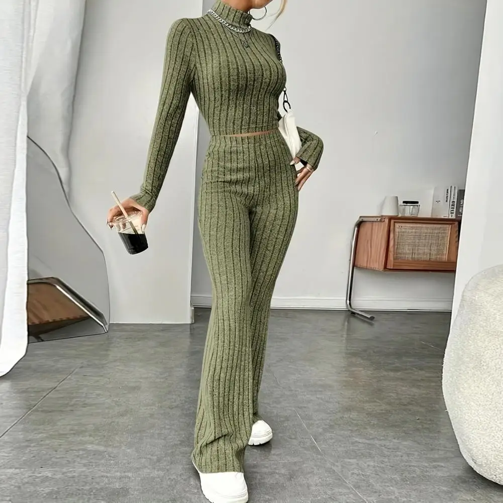 2 Pcs/Set Fall Winter Women Top Pants Set Half-high Collar Long Sleeves Slim Fit Sweatshirt High Waist Solid Color Striped Trousers Set Sport Casual Daily Wear Outfit