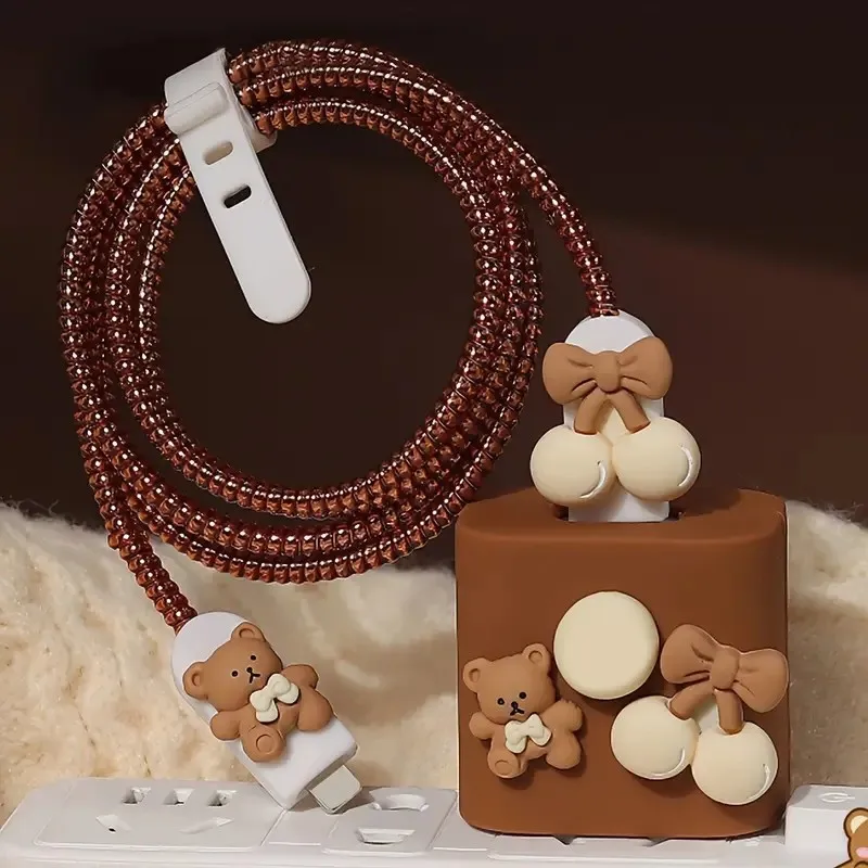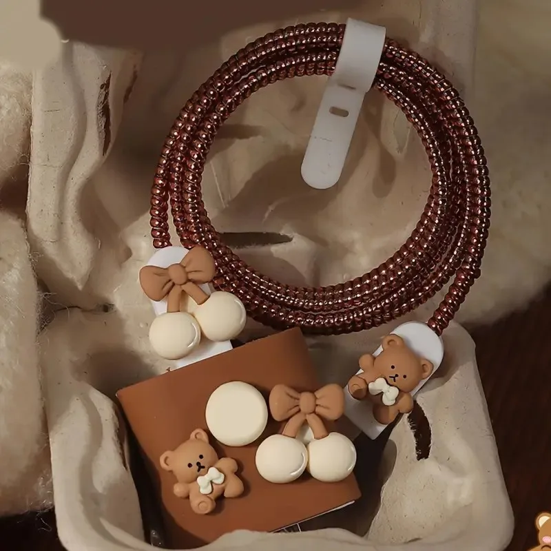 Charger Cable Protector For Iphone 15 14 13 18W 20W Charger Protector Cover Cartoon M Bear Protective Data Line Spiral Winder