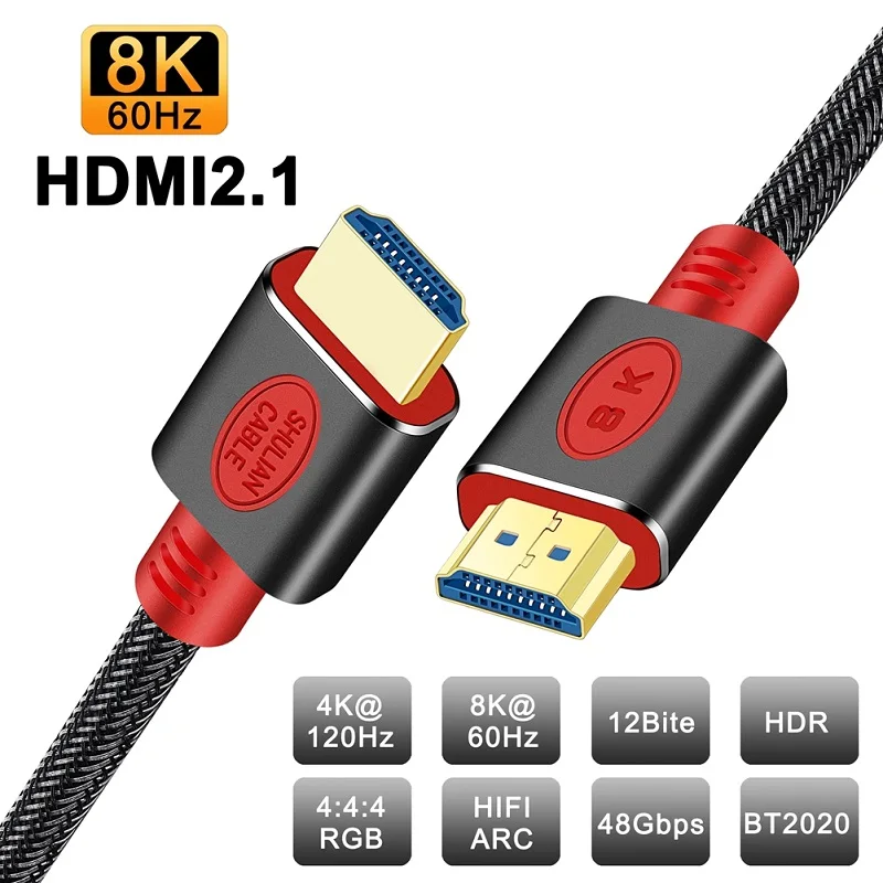 HDMI-com Cable 8K@60Hz 4K@120Hz Ultra ARC HDR High-Speed 48Gbps HDCP2.2 For Splitter Switch PS4 TV Xbox Projector Computer 2m 3m