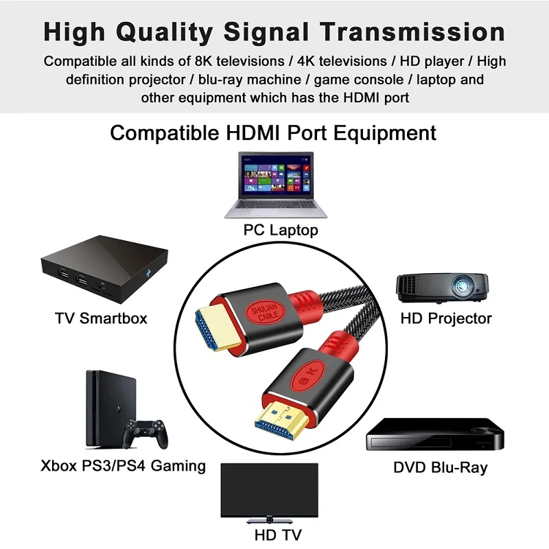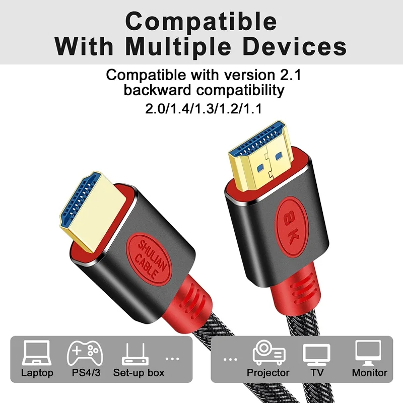 Immerse yourself in a world of stunning visual clarity with the HDMI 2.1 Cable. Supporting 8K@60Hz and 4K@120Hz/60Hz, this cable delivers unrivaled picture quality for your Mi Box, Splitter, Switch, PS5/4, TV, Xbox, Projector, or Computer. With a high-speed 48Gbps bandwidth, experience seamless connectivity and ultra-fast data transfer. Say goodbye to lagging and buffering, as the HDMI-compatible 2.1 Cable ensures smooth, lag-free streaming and gaming sessions. Elevate your entertainment experience to new heights with this premium cable.