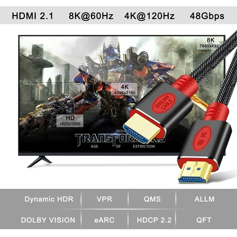 HDMI 2.1 Cable 8K@60Hz 4K@120Hz/60Hz ARC HDR 48Gbps