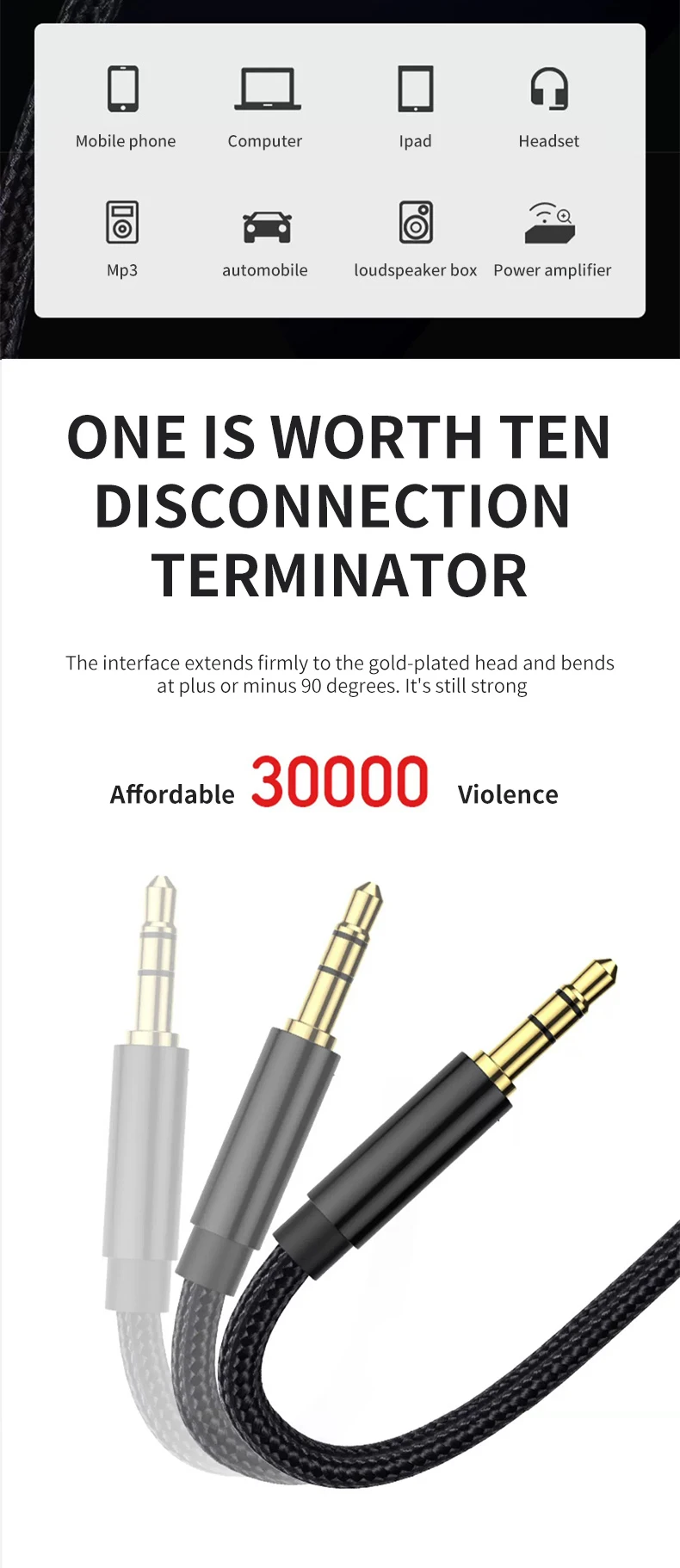 Kebiss Jack 3.5 Audio Cable 3.5mm Speaker Line Aux Cable for iPhone 6 Samsung Galaxy s8 Car Headphone Xiaomi Redmi 4x Audio Jack