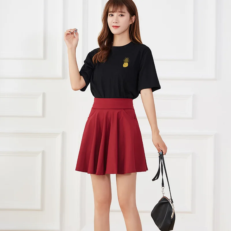 New Black Pocket Shorts Skirt Women's Basic Safety Pants Skirts School Flared Casual Mini Skater Medium Pleated Plus Size 4XL