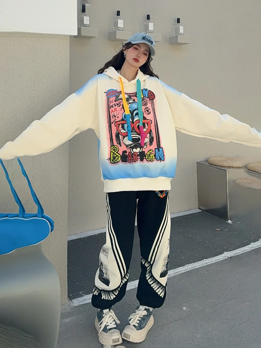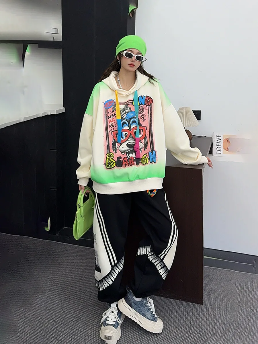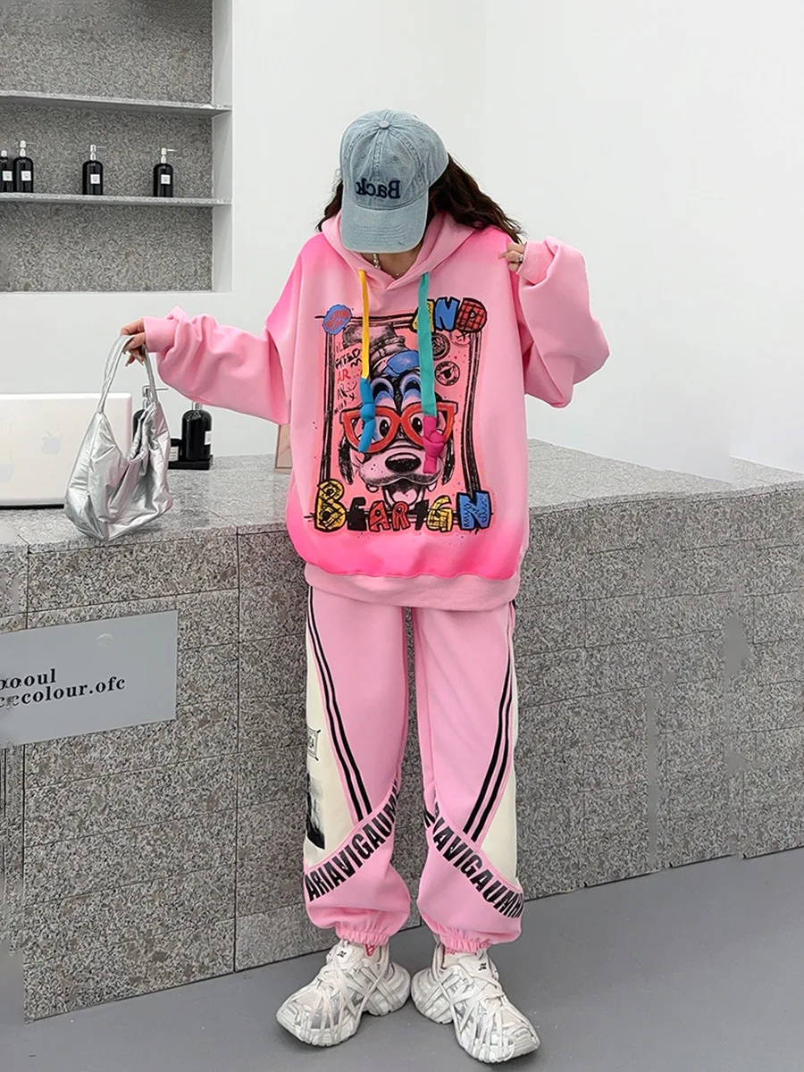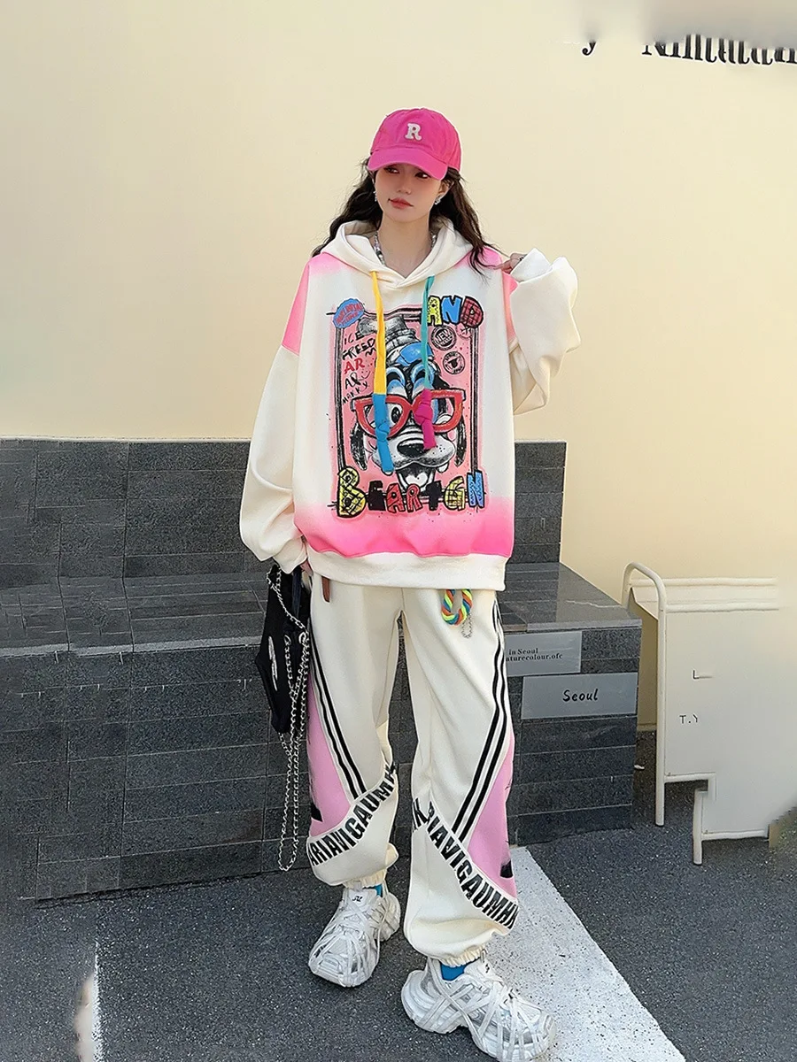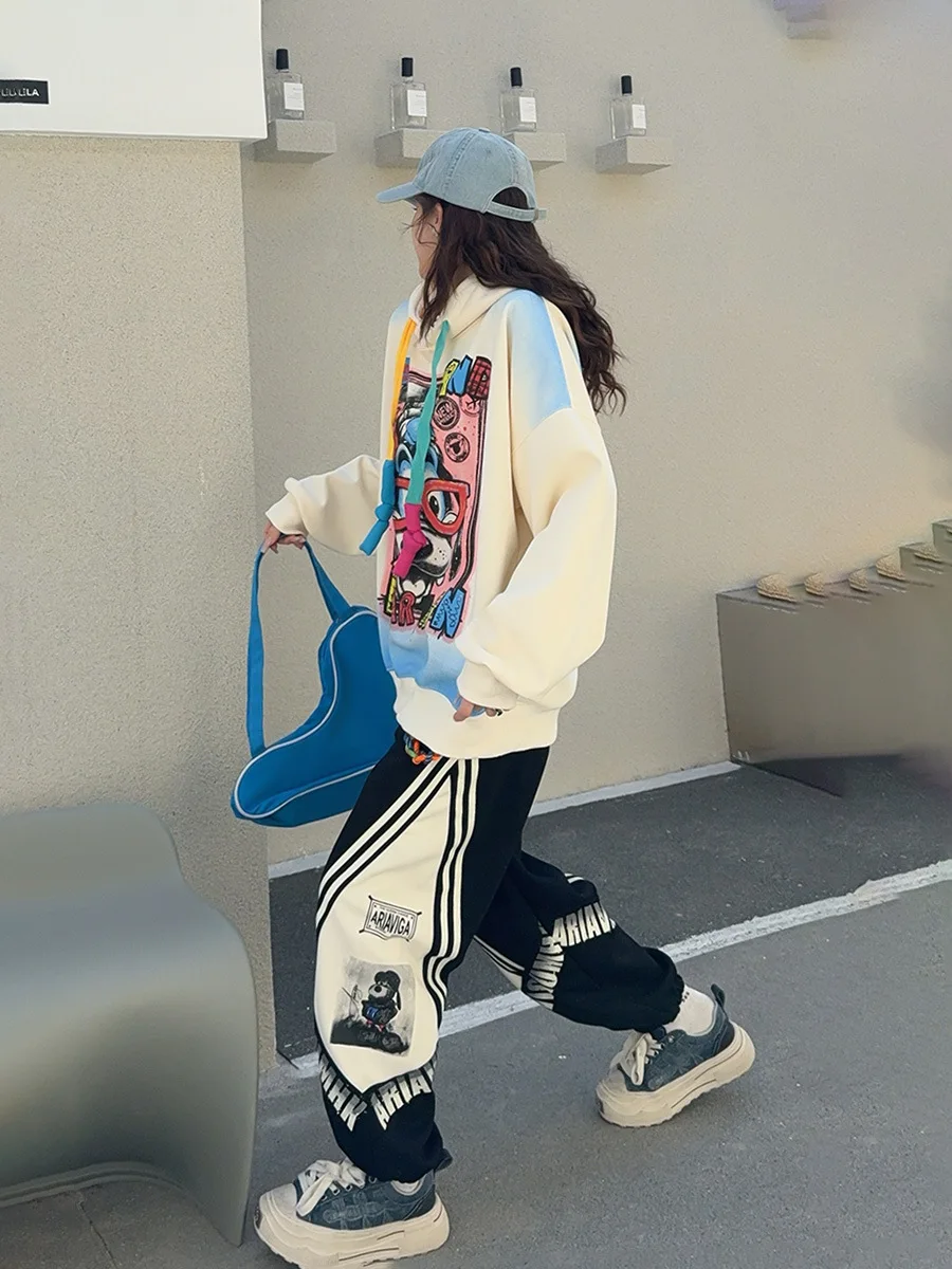 Spring Autumn Suit Fashion Splicing Cartoon Printing Suit Women's Outfits Trendy Brand Sweatshirt and Sweatpants Two-piece Sets