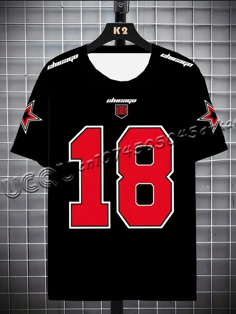 Summer Men's Fashion Sports T shirt Geometric Patterned Crew Neck Women's Short Sleeve Casual NO.18 Print T-shirt