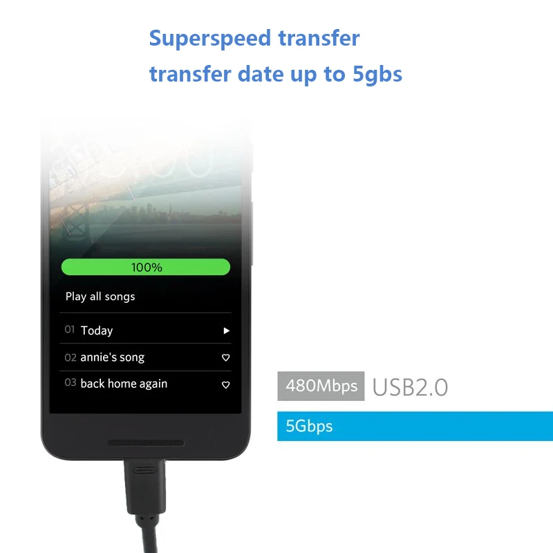 *New type-C connector, connector connecting line via the 1A current, charges phones and tablets with USB-C ports at high speed